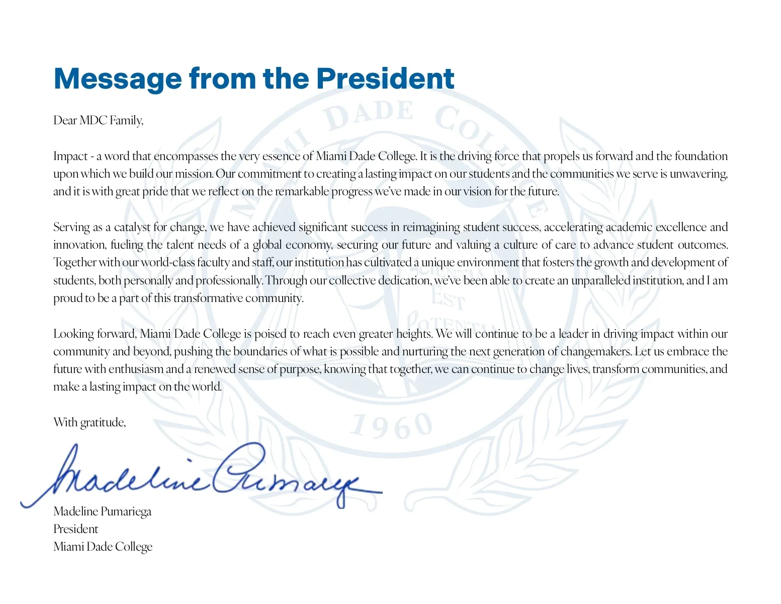 A Year of Momentum: MDC President Madeline Pumariega / 2022 Annual Report